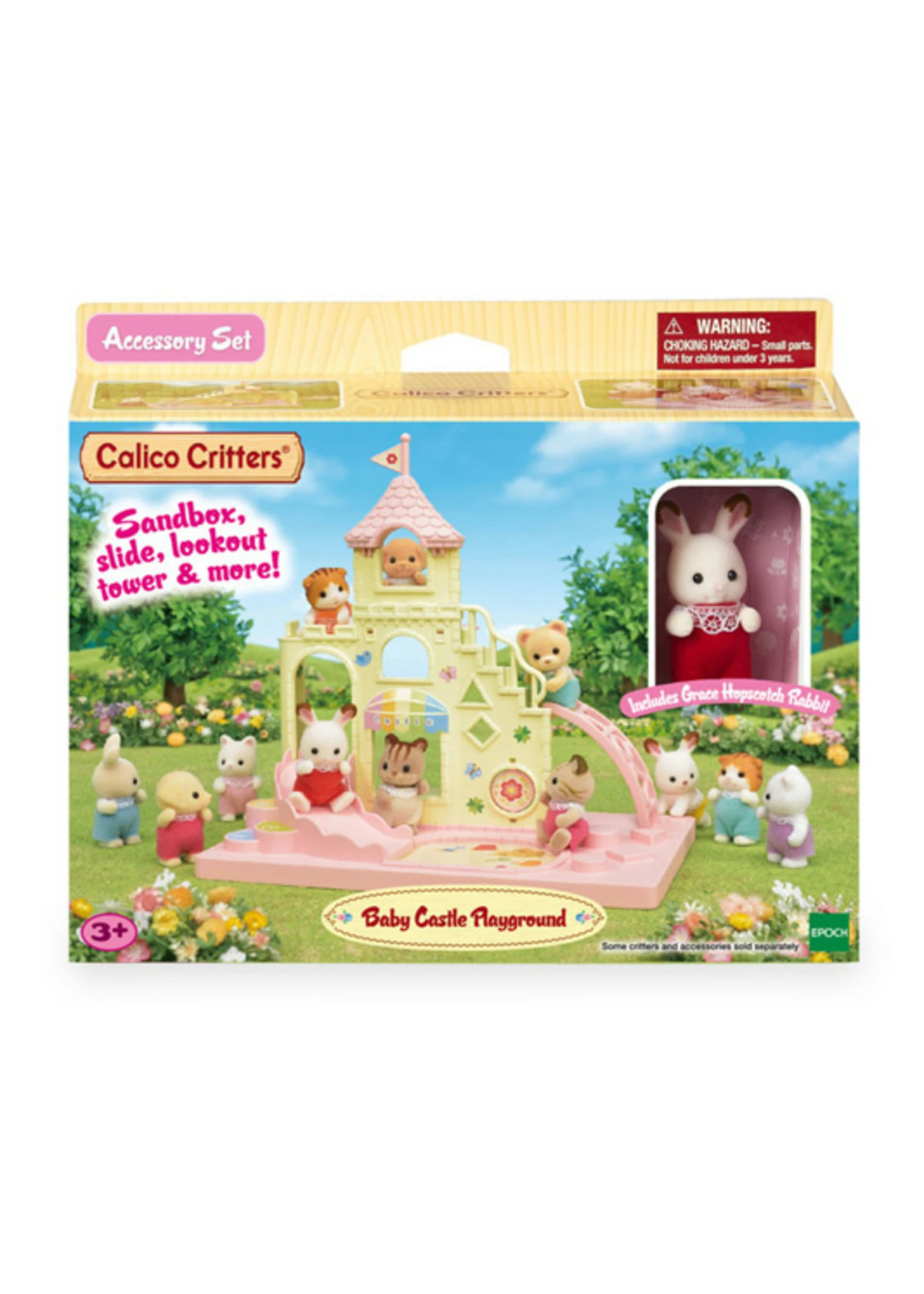 Baby Castle Playground comes as a set with one Hopscotch Rabbit Baby figure. This playset is immediately ready for play as a stand-alone product. It includes a slide, ladder, sandbox, and other fun baby playthings.