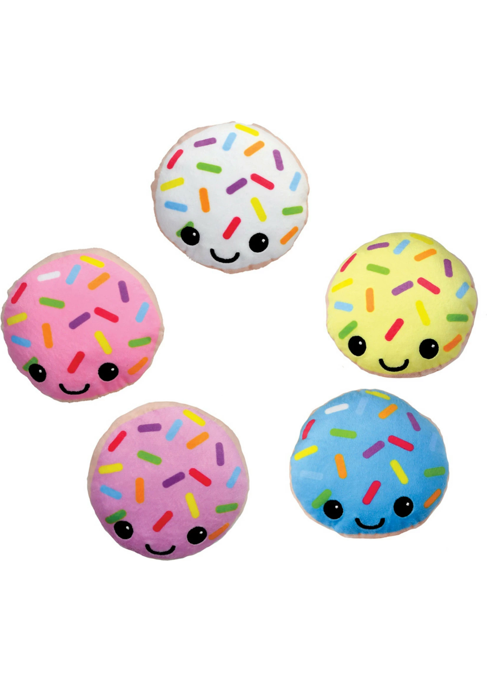 Is this a squishy soft plush, or an interactive pretend-play toy? It’s both! 5 mini sugar-cookie pillows with embroidered detailing fit cozily inside. Let’s play! Approximately 10×16″ in size.