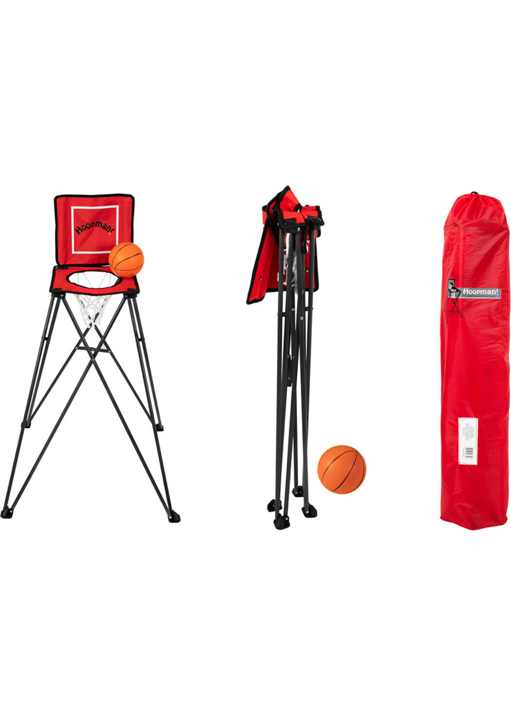 Going somewhere? Don’t forget the basketball court! This 1-piece hoop pops open, for active fun anywhere. No assembly required – it folds up easily and stores in the compact carrying case. Hoop, ball and carry bag included. Play alone or with friends, indoors or out. 3 1/2′ high by approx 5″ square, it’s a slam dunk!