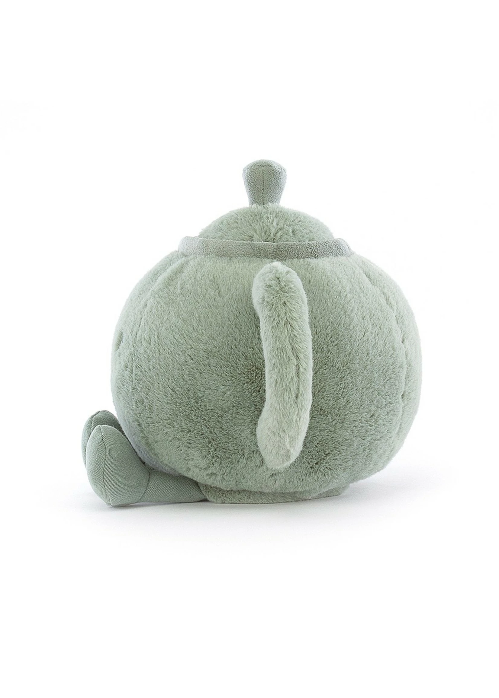 Amuseable Teapot is short, stout and splendid! In minty grey with a soft loop of handle, bobbly lid and curving spout, this plump chinaware chum is intent on brewing up a soothing cup or three! An all-round good’un with suedey accents and a reassuring grin.