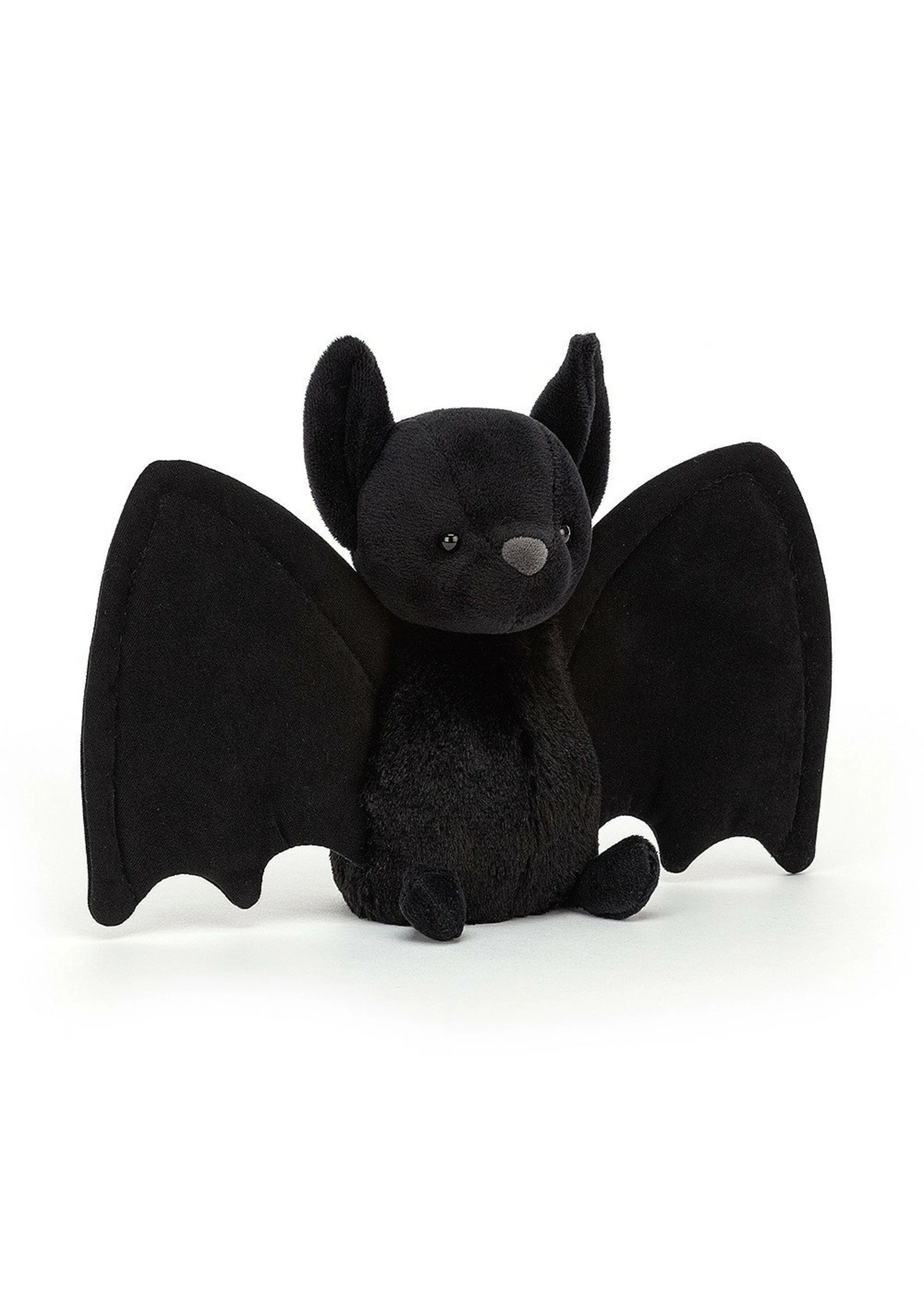 Bewitching Bat is a curious cutie, and loves to flit through the trees at dusk! This treacle treasure has a scrummy round tummy and stretchy-soft ears in inky black fur, as well as fine suedey wings and teeny-tiny feet. Zoom past the moon and listen out for moths!