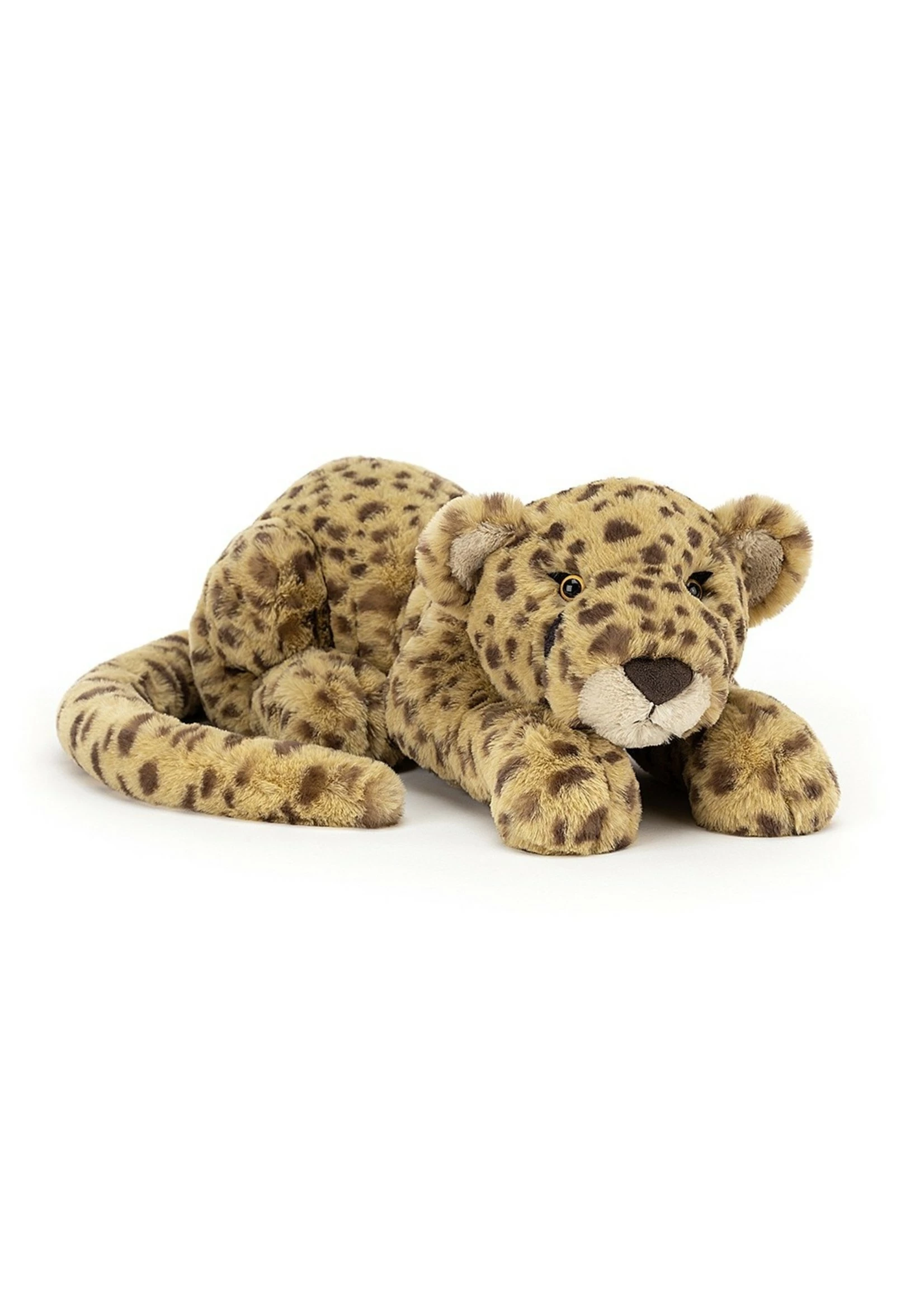 After a long day of speeding about, Charley Cheetah is snatching a snooze! This amber-eyed cat is divinely flopsy, with a long, mighty tail and chunky-soft paws. Cuddle up close and count those spots, or tickle that chunky chocolate nose.