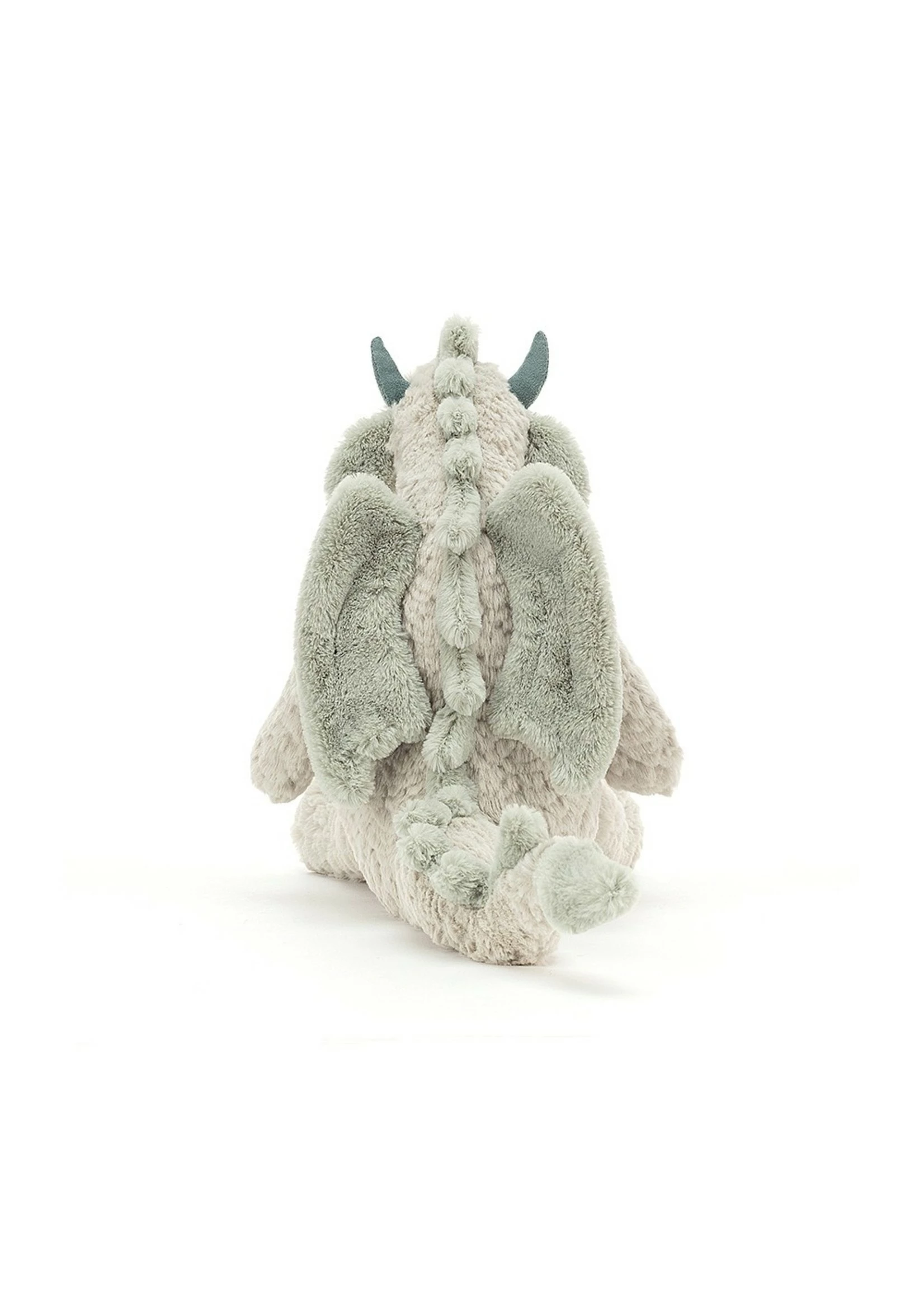 Lallagie Dragon is sleepy and sweet, with magical mint-and-moss fur. Tussly-tufty with a podgy paunch, crinkly tail and suedey horns, as well as those wonderful sagey wings, this snuggle-spined dragon’s a fairytale friend!