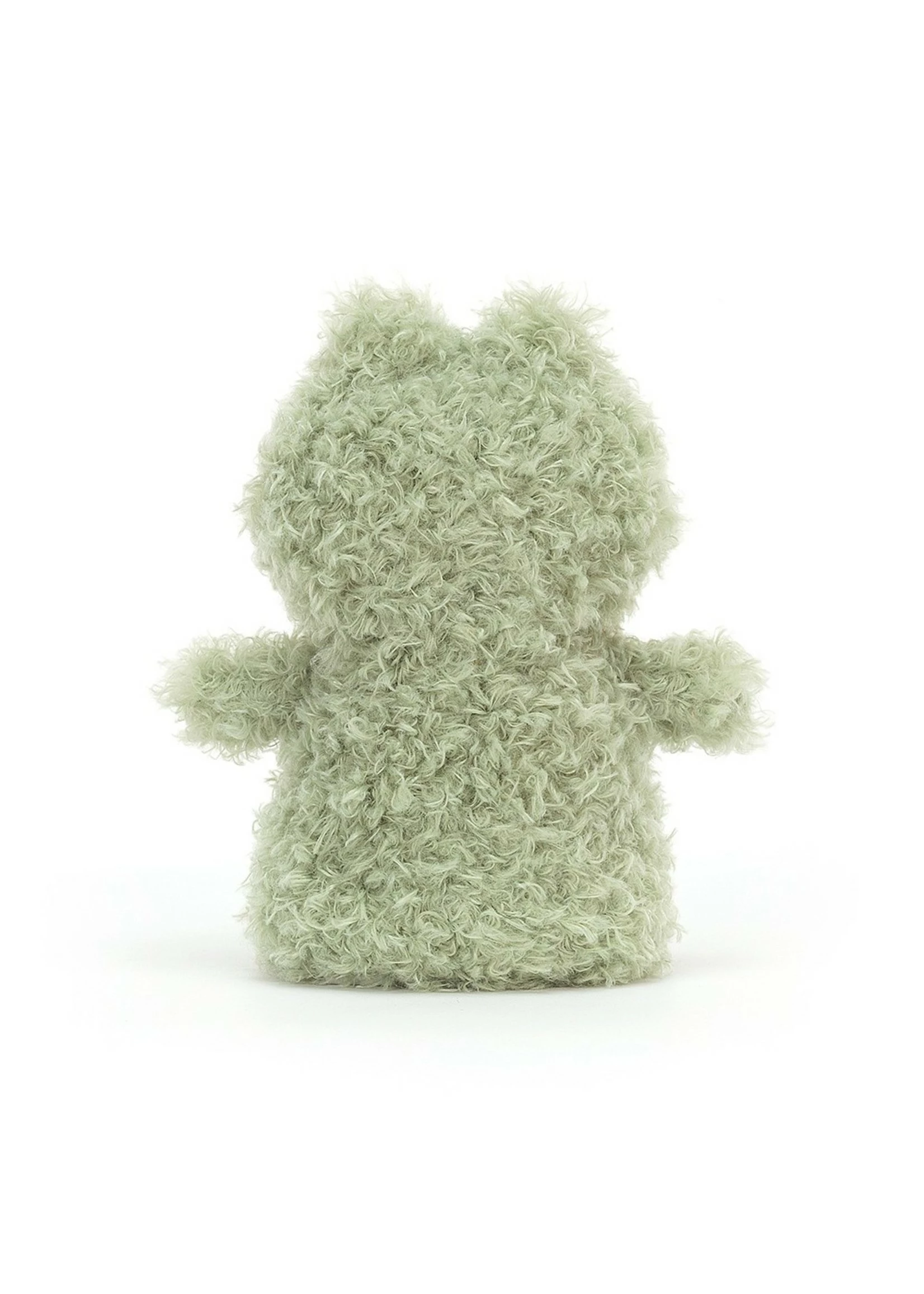 Here’s Little Frog, lining up for the first gentle hop of the day! This mossy moppet is just so tufty and scrumbly-soft, with such a small, secret smile – like a tiny tussock of joy. Look at those teensy arms and legs too! Count to one, two, three, and let this frog jump into your hands!