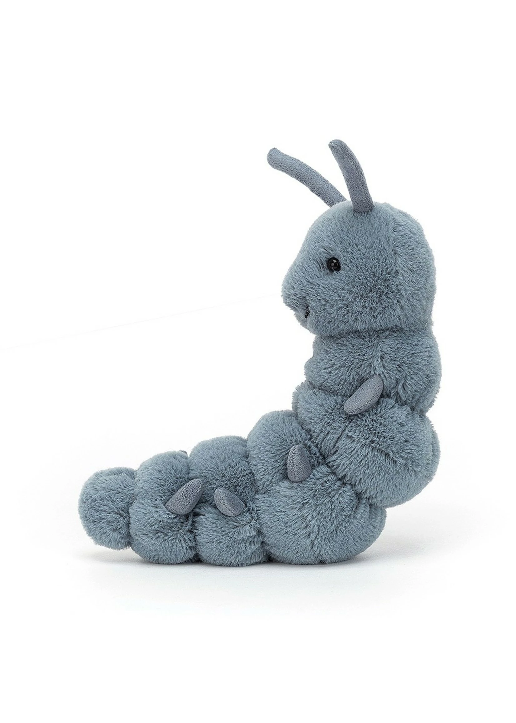 Sitting up to say hello, it’s cheery, chatty Wriggidig Bug! Squiggly and smiley, this snuggly bug has quite the quirky quilted tummy! With diddy legs, suedey feelers, a weighted bottom and a big bug smile, this Wriggidig is a garden goof. Tucked in a tree or sat on the bed, our podgy pal is full of outdoor fun.