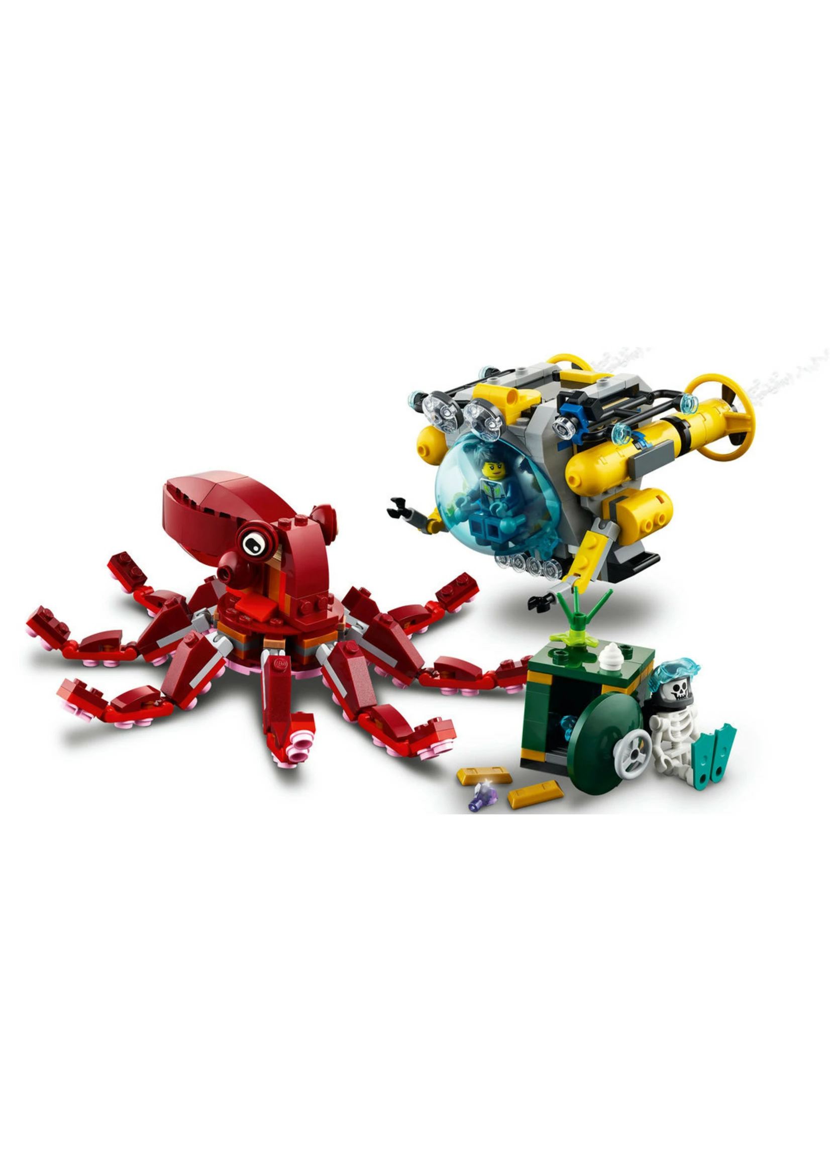 - 2 minifigures – There are 2 minifigures with each build: a skeleton and either a submarine pilot or a diver so kids can enjoy fun role-play action