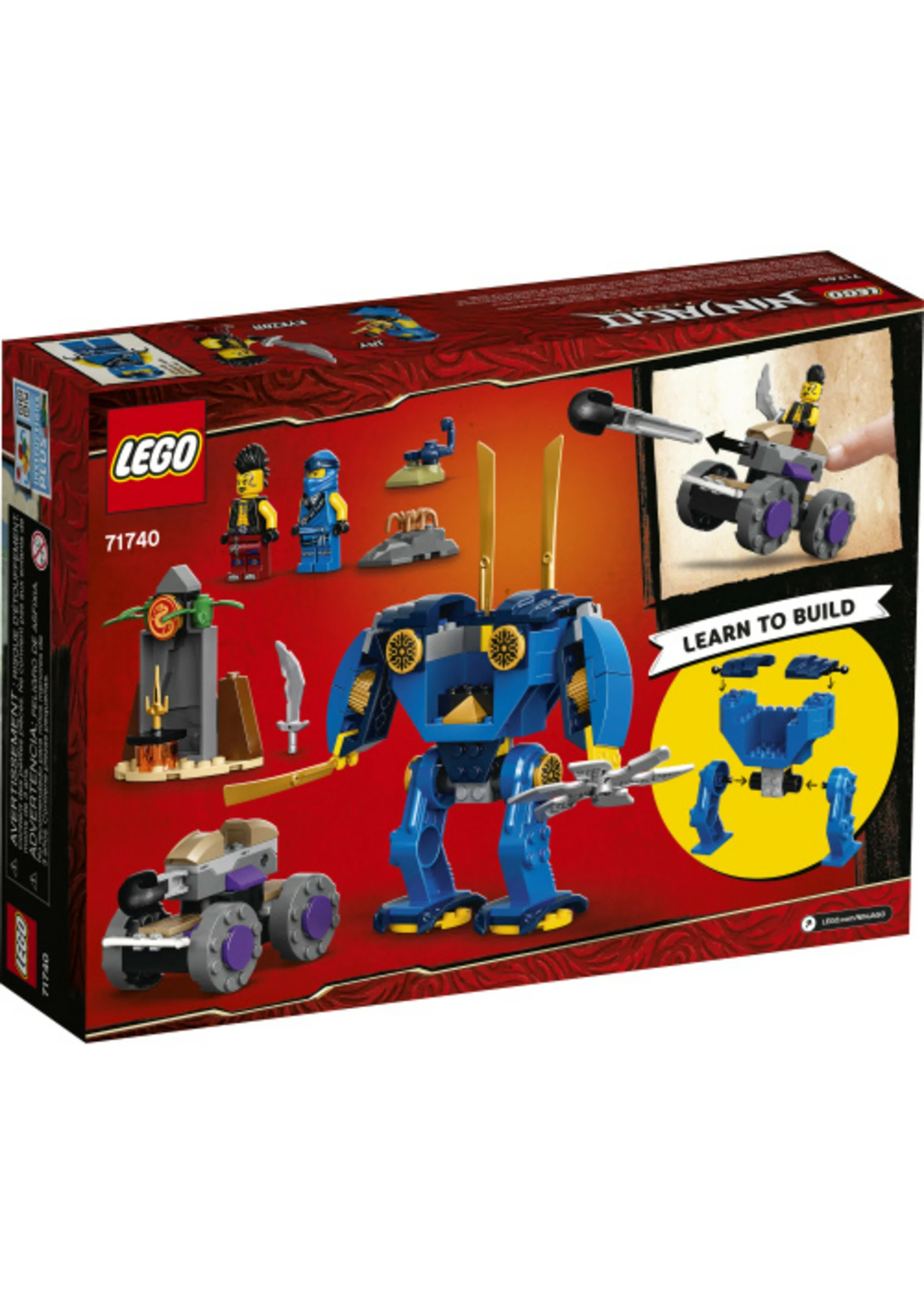 LEGO® NINJAGO® Jay’s Electro Mech (71740) helps kids learn how to build before they enjoy fun battles with a posable mech toy and ninja car.