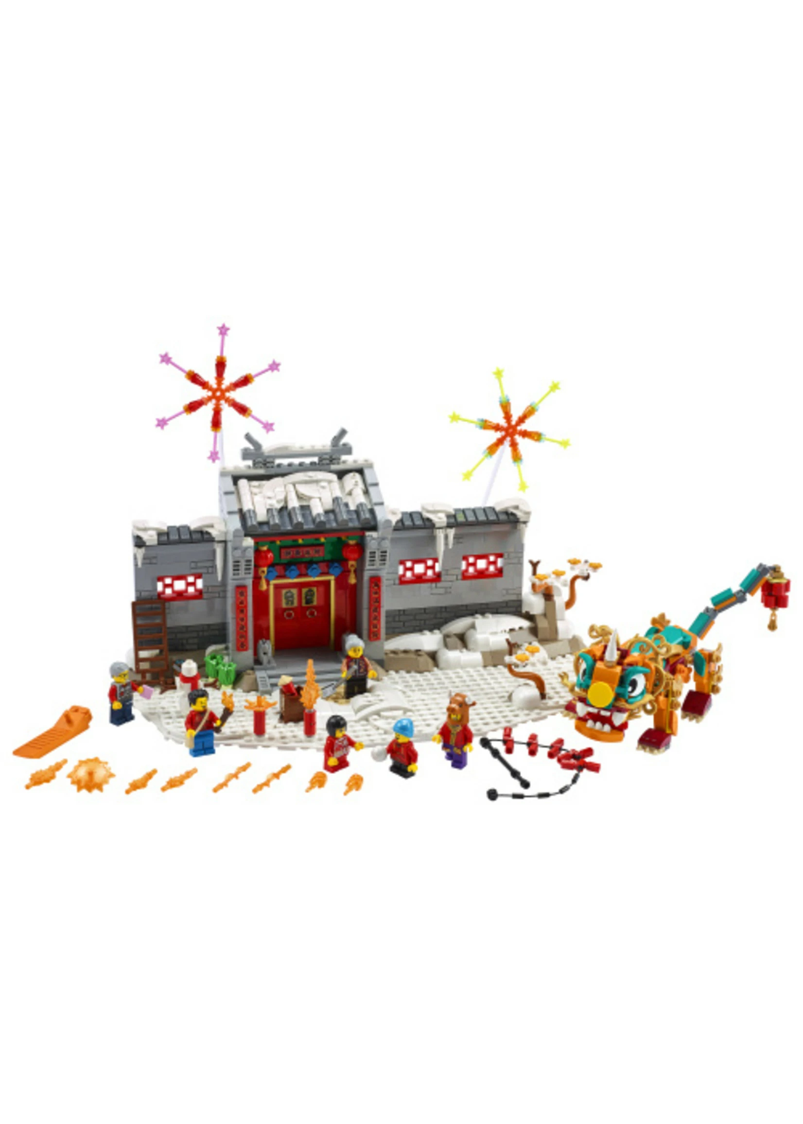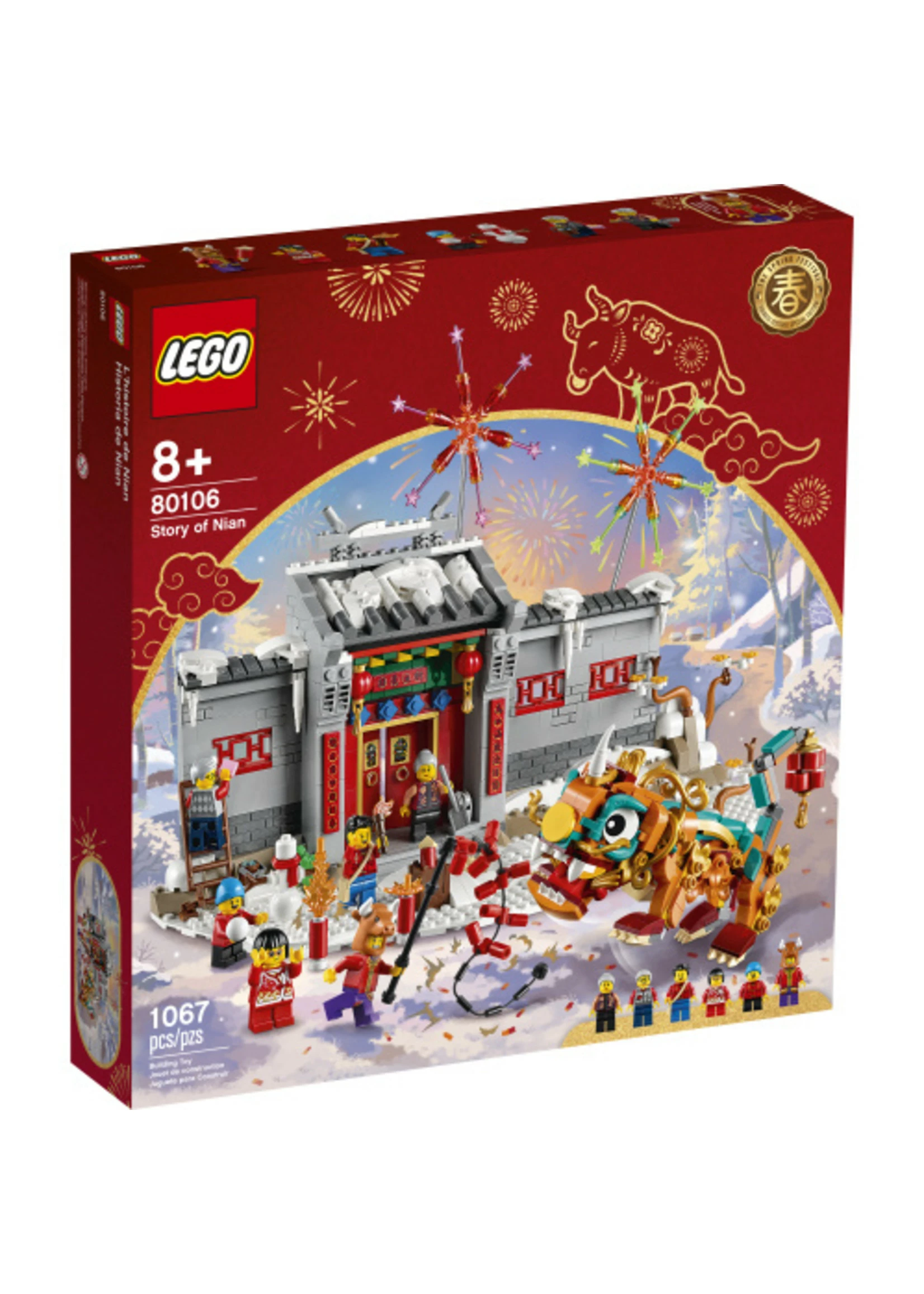 Let kids learn the Story of Nian and celebrate a Lunar New Year ritual with this LEGO® brick-built, traditional Northern China-style residence in a snowy scene and a posable toy Nian creature.