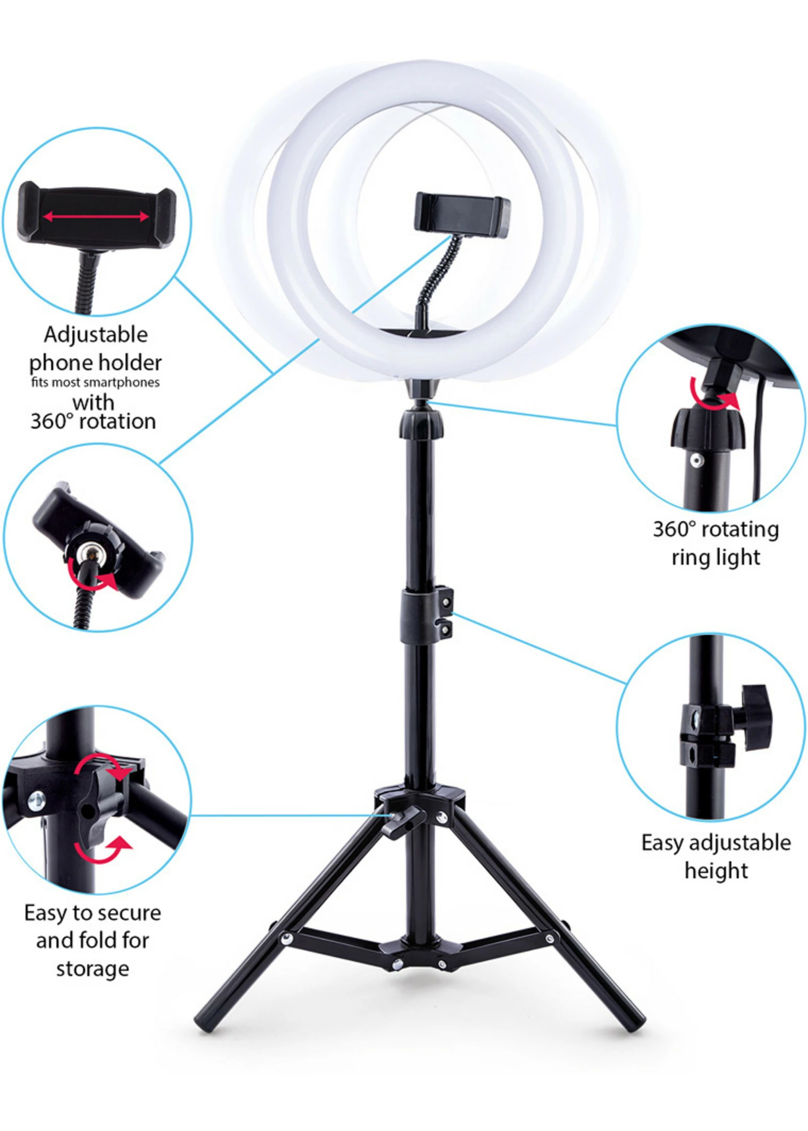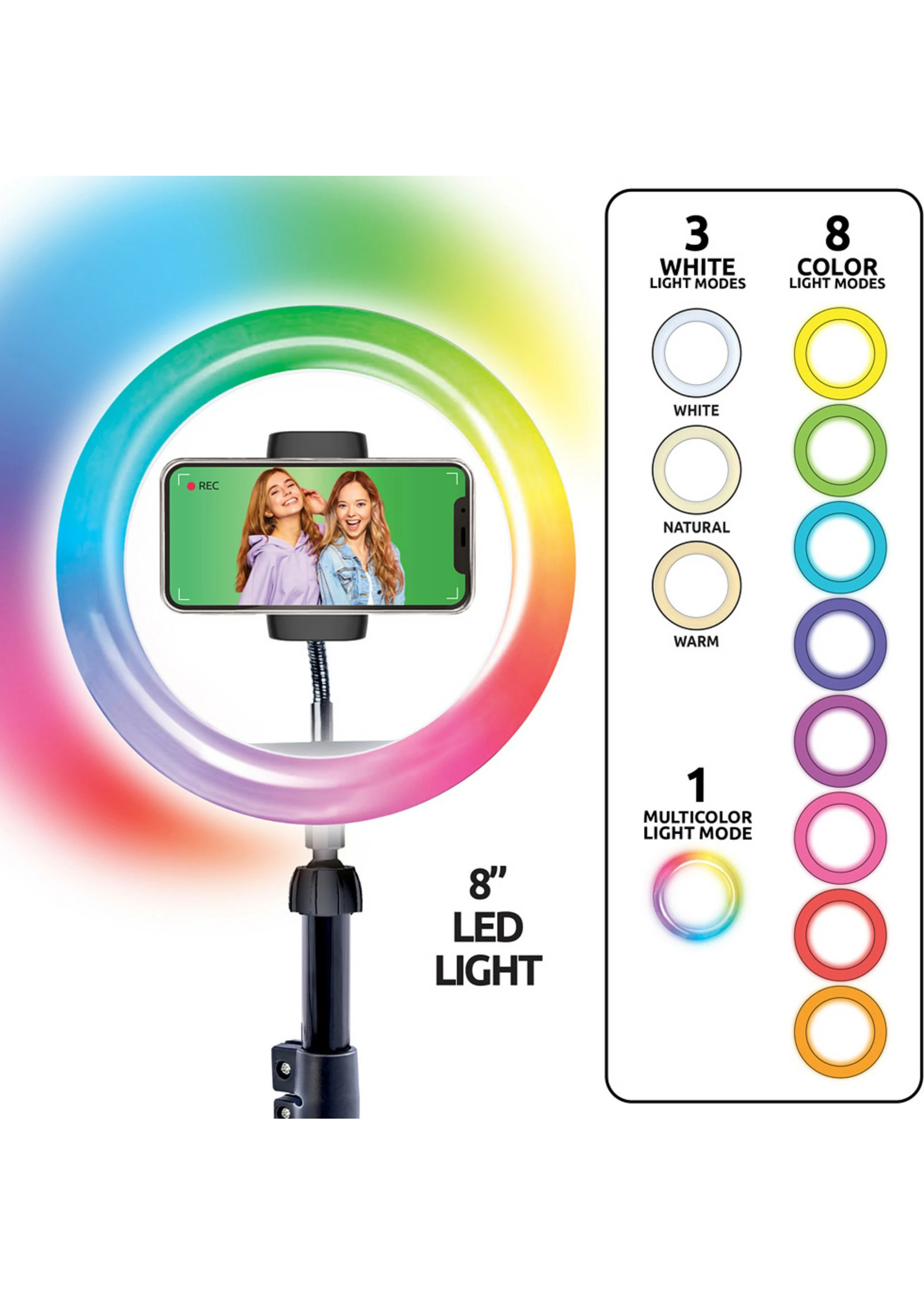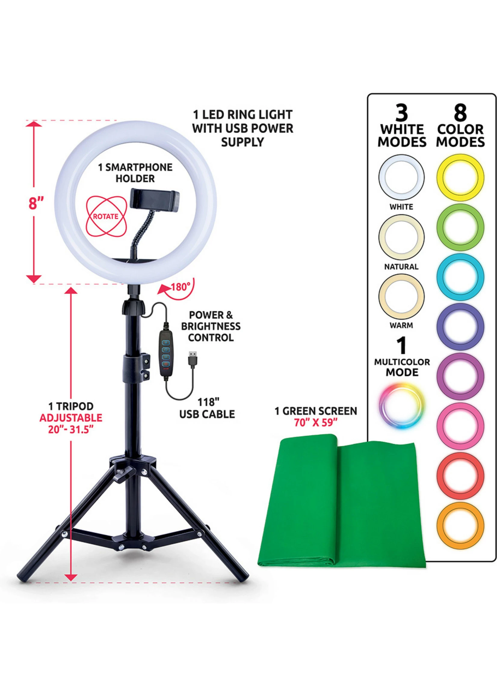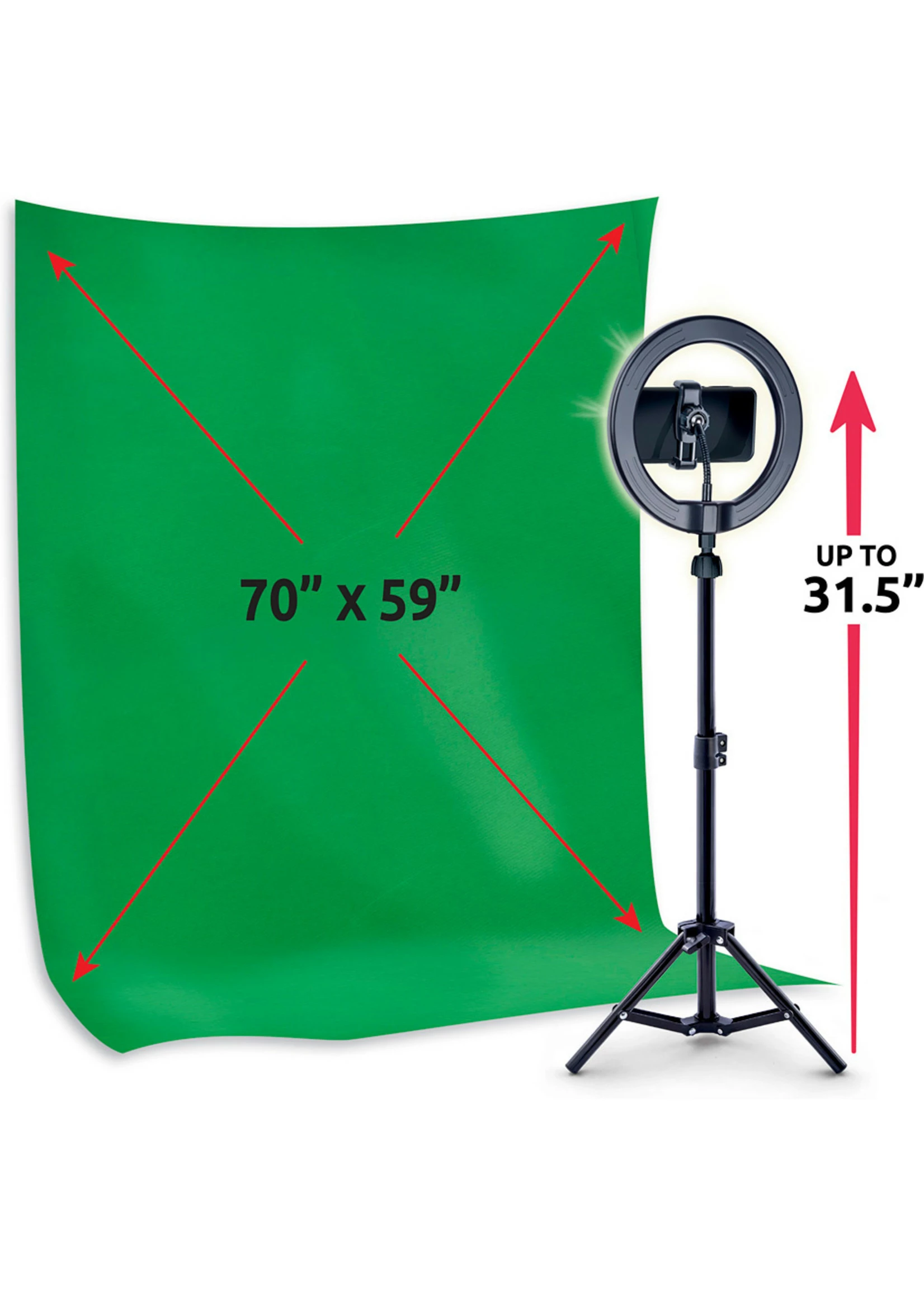 Take your videos to the next level! Customize your background and lights to make your own unique vlogs, reviews, tutorials, music videos and more. Great for parties too! Includes adjustable tripod, 59×70″ green screen, 12-mode LED ring light with USB power supply, smartphone holder, 118″ USB cable, plus power and brightness controller. Remember, privacy and safety are top concerns, so follow age guidelines and regulations when using social media!