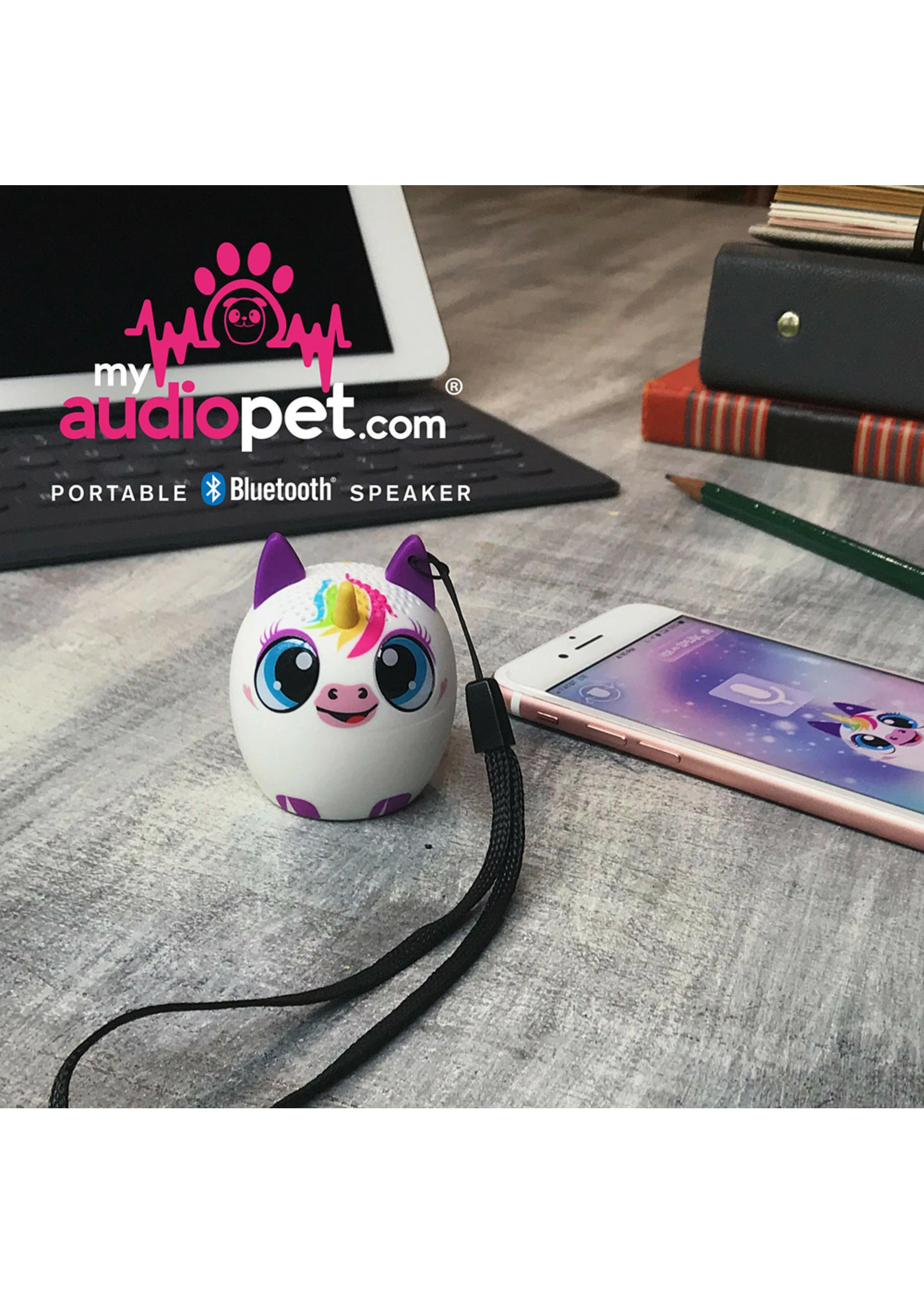The mighty mini music makers! Sure, they’re small (a bit bigger than a golf ball) but prepare yourself to be wowed by their huge sound, built-in mic, and irresistible cuteness! Includes USB charger.