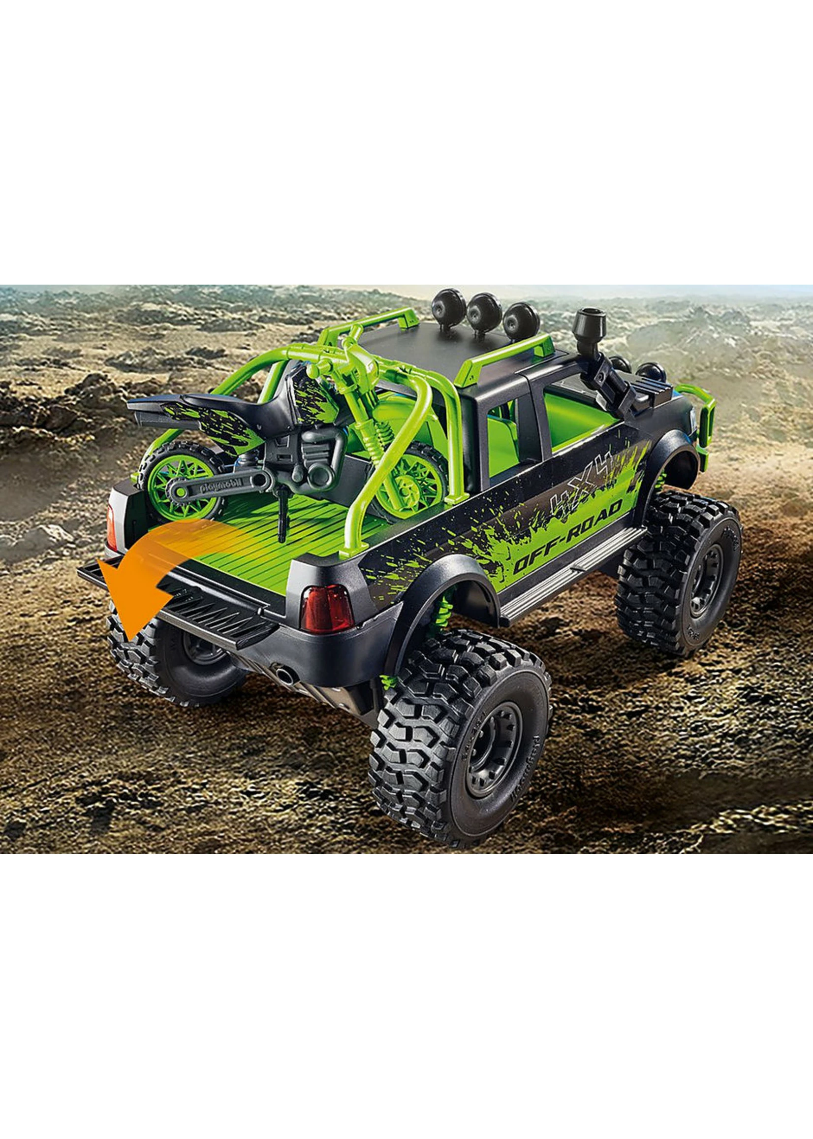 Go off the grid with this Weekend Warrior! Equipped with roof rack for your canoe and enough room in the truck bed for the motorbike, this monster truck is ready to hit the toughest roads in search of the next off-road adventure. Thanks to the spacious design, the truck can seat up to four figures, so be sure to invite some friends along for the ride! When the 4×4 is parked, take the bike out on the trails for some extreme sports – just make sure to wear your helmet! The vehicle also comes with front rope winch for emergencies to haul out another vehicle or fallen tree on the path.