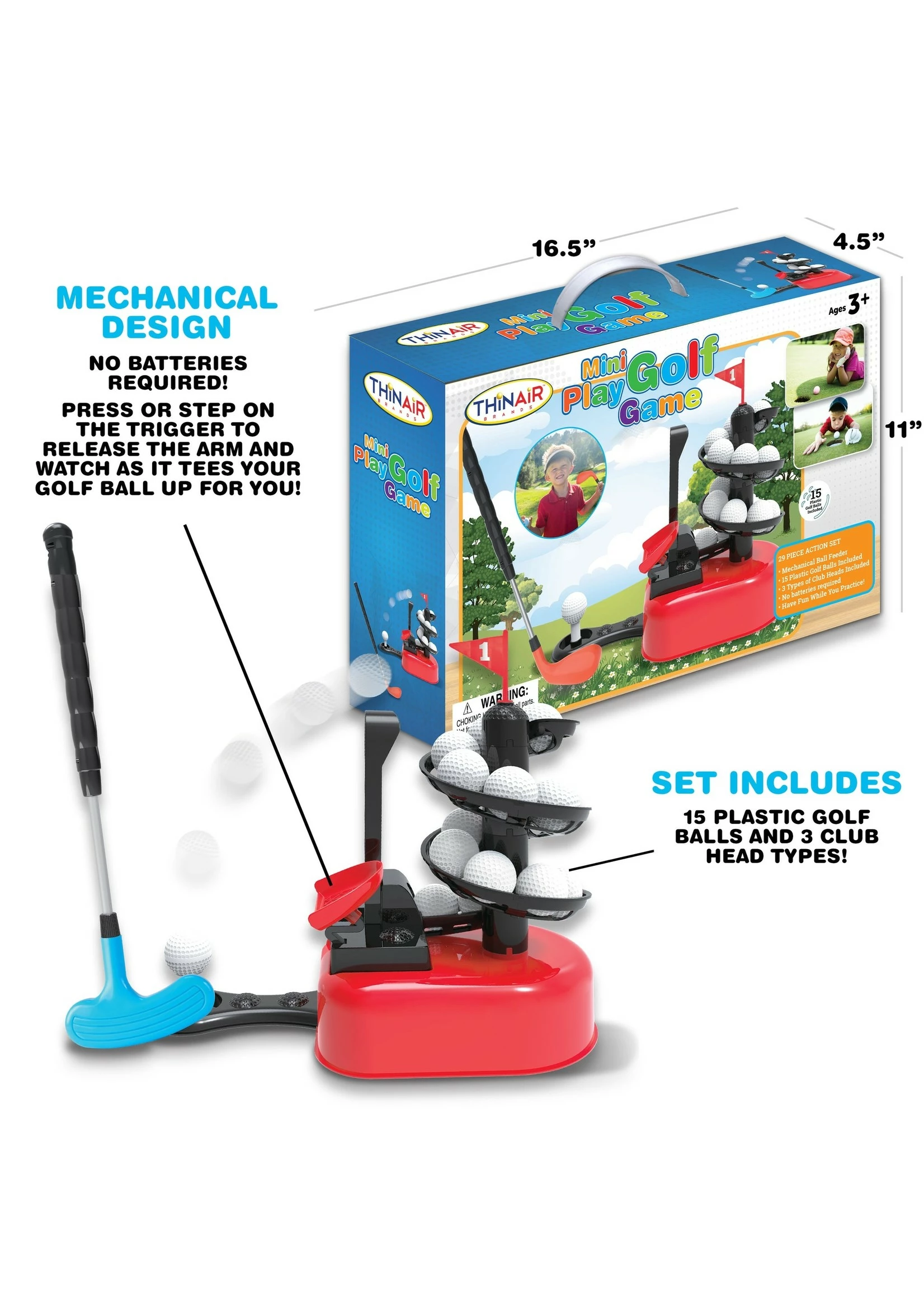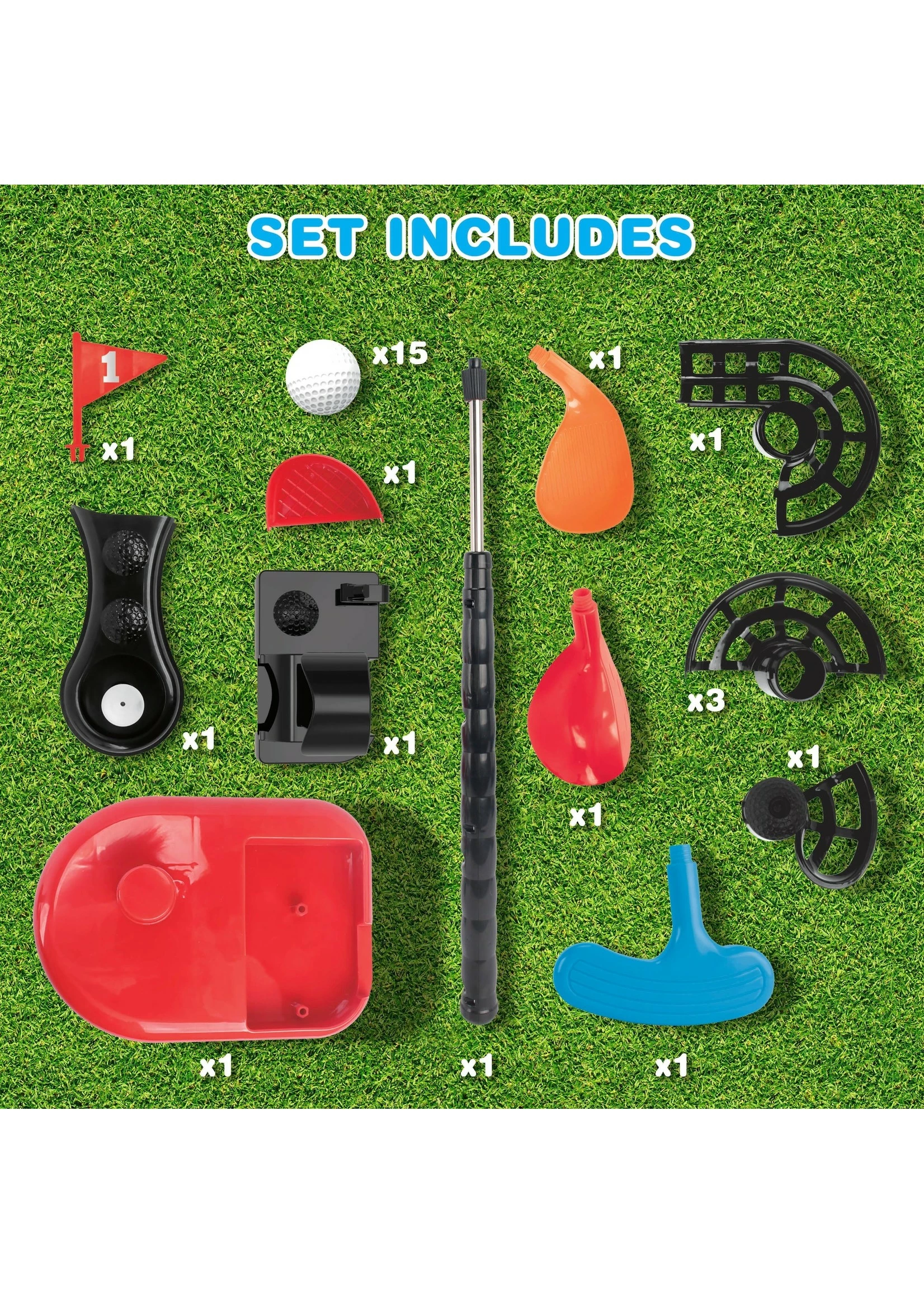 - Even Tee-Up Is Extra Fun: You’ll love the cool way this mini golf set sets up the ball for tee-off. Your child simply presses down the lever & the mechanical arm feeds the balls right to the tee.